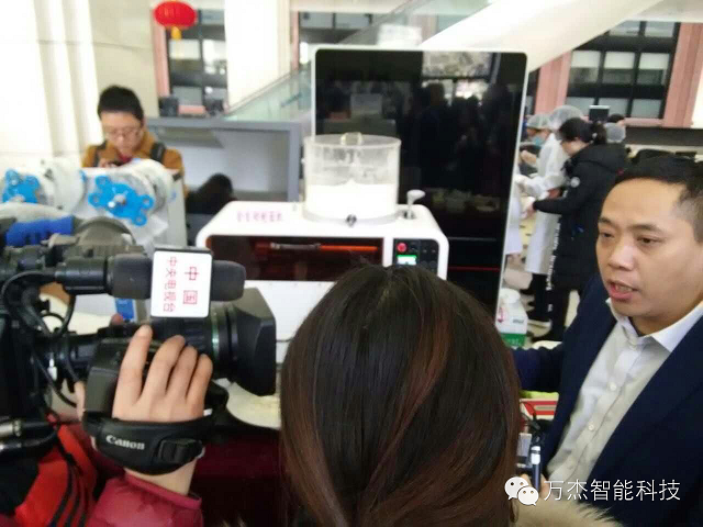 (中國農科院張泓博士向央視介紹萬杰智能鮮面機)