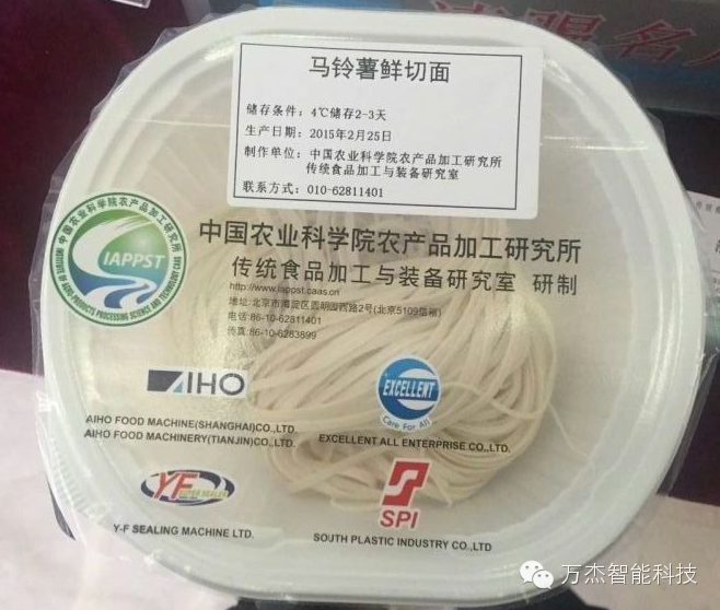 據悉,在昨天農業部召開的馬鈴薯產業開發成果會議中,萬杰智能作為設備方代表,憑借“智能化”技術創新與突出貢獻,受到了各領導與專家學者的高度贊揚。其中,萬杰智能鮮面機作為生產馬鈴薯鮮切面的明星產品,一經亮相受到全場關注,并獲得了中央電視臺的特別展示。