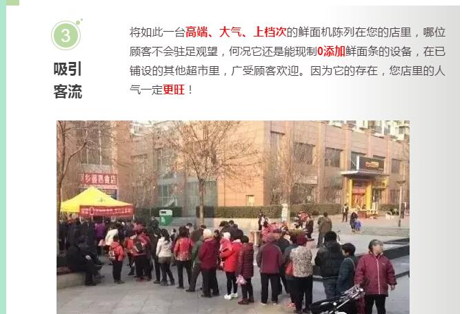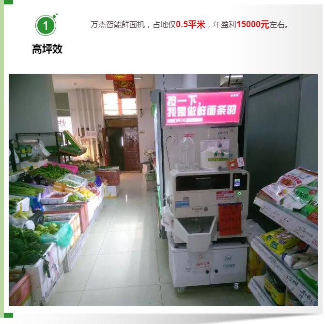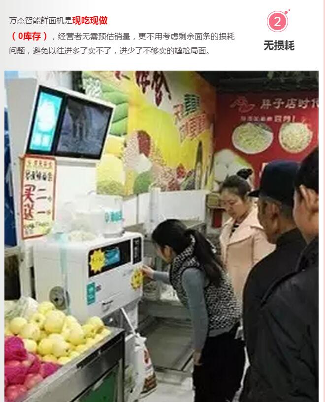 如今,萬杰智能鮮面機已成為超市的熱點項目,尤其對于社區超市,萬杰智能鮮面機有著巨大優勢: