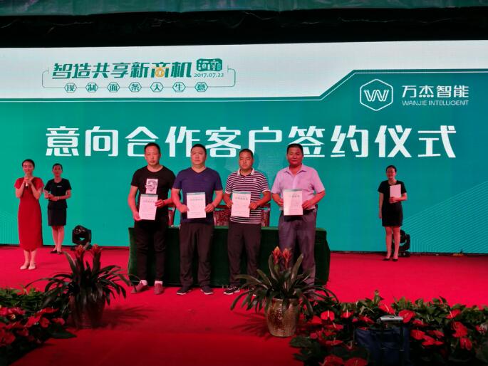 722,智造共享新商機萬杰智能鮮面機河南大區定向招商大會在許昌成功落下帷幕。超過70家意向合伙人(170余)齊聚本次招募大會,當天有30意向合伙人簽訂合作意向書。